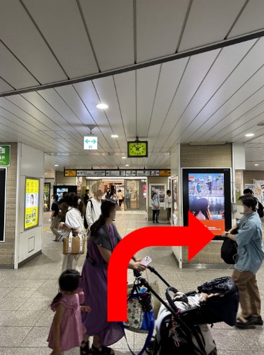 JR船橋駅中央改札口を出て右へ進みます。(南口方面へ)