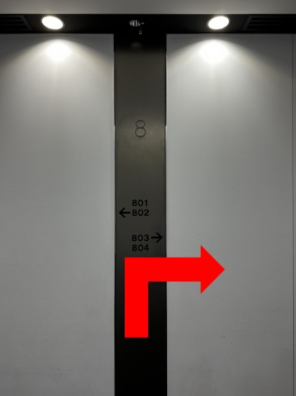 自動扉からビル内へ入り、エレベーターで8階までお越しください。