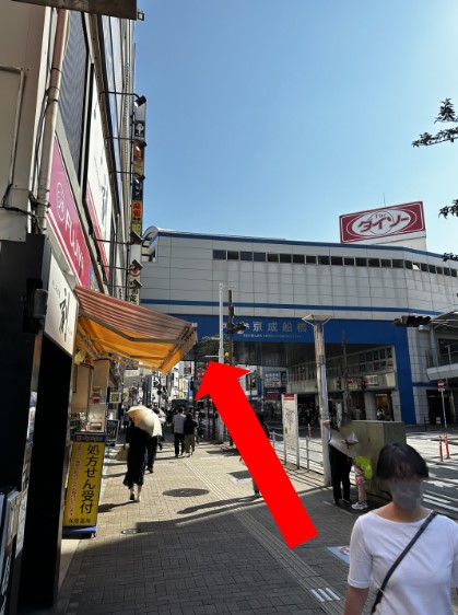 京成船橋駅の下を通過し、200メートルほど直進します。