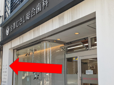 横断歩道を渡り、金澤むさし総合歯科・矯正歯科の横を直進します。
