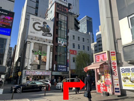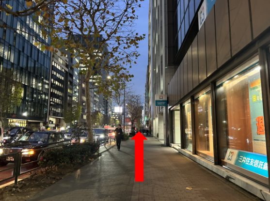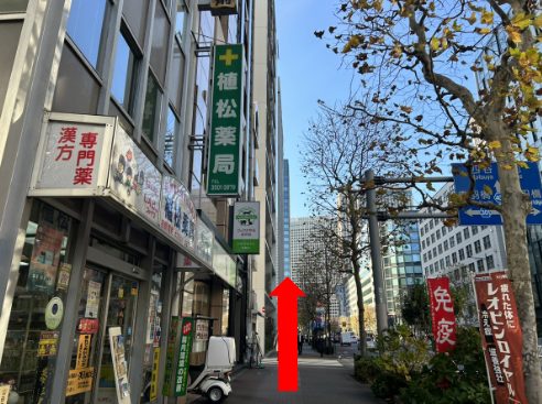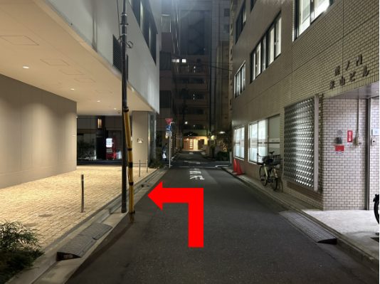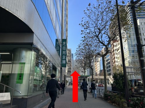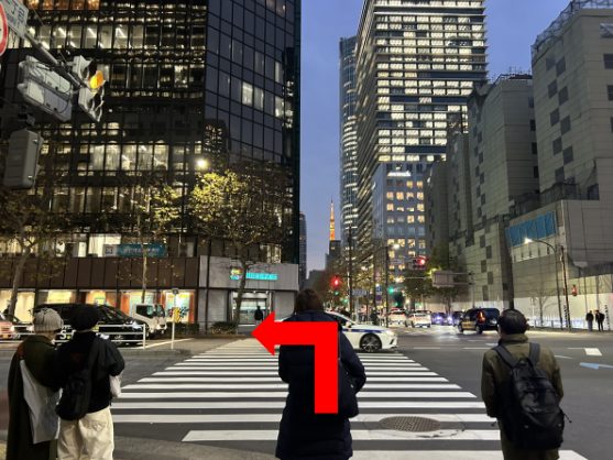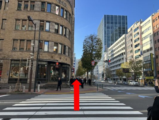 ③虎ノ門栗山ビルの向かいのビル方面へ左折します。