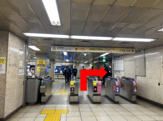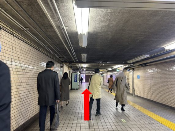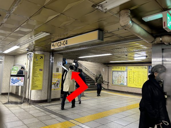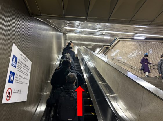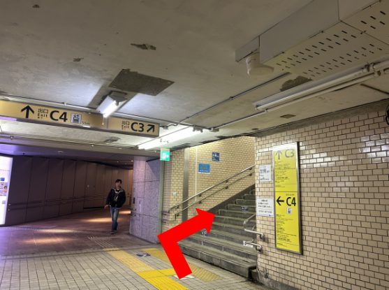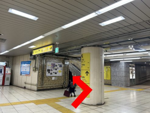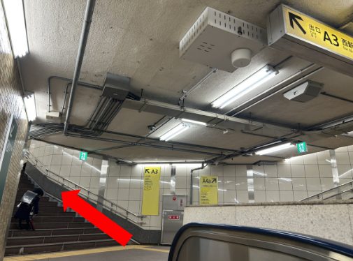 ③エスカレーターから降りた後、出口A3方面の階段を登ります。