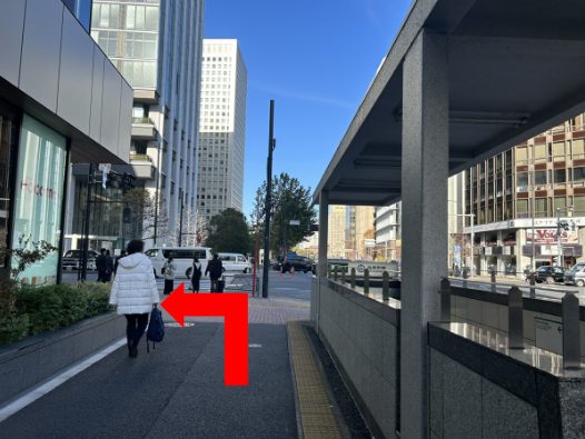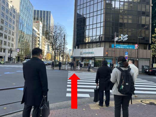 ⑦三井住友信託銀行のある交差点を渡り、渡った後左折します。