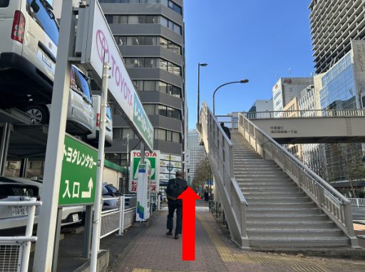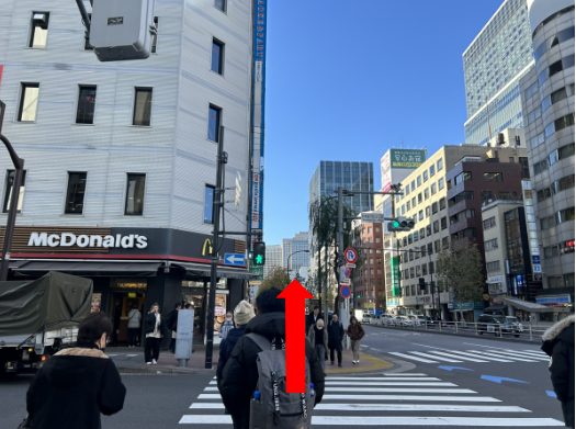 ⑤「新橋二丁目」の交差点を渡り、さらに200メートル程直進します。